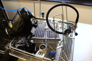 ein neuer Trockenschrank angeschafft. Mit der neuen Waschmaschine können die Masken, Lungenautomaten und Trägerplatten gereinigt und desinfiziert werden. Ein Vorteil der Maschine ist die integrierte Osmoseanlage. Diese filtert sämtliche Verunreinigungen und Mineralien aus dem Waschwasser und somit nach dem Trocknen keine Wasserflecken entstehen. Nach einer kurzen Aufheizphase kann mit Hilfe der Vorwahltaste das gewünschte Reinigungsprogramm ausgewählt werden. Über eine am Korb angebrachte Druckluftversorgung wird sichergestellt, dass die Lungenautomaten zur Zeit der Reinigung unter Druck stehen und somit kein Wasser in das System eindringen kann.